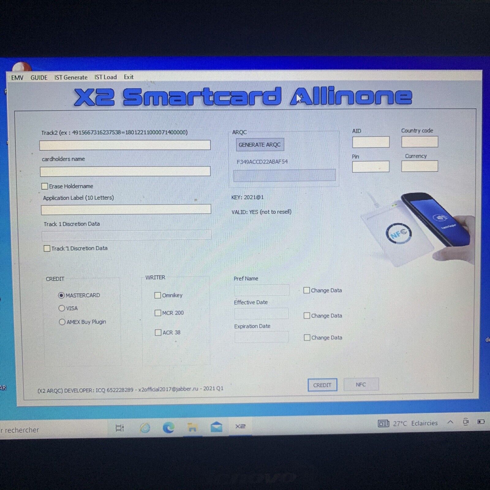 Q1) What type of card I can Read Write with this EMV X2 2021 Software?